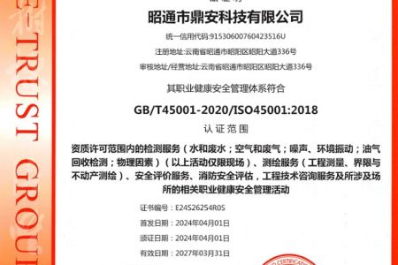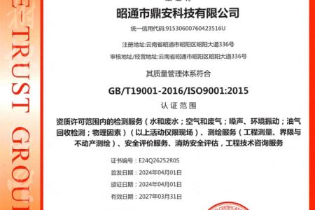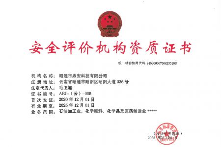 2003年11月10日,昭通市鼎安科技有限公司成立,初始主要從事第三方安全工程技術服務,經多年運營,發(fā)展為多專業(yè)綜合科技平臺,為社會提供多種專業(yè)技術服務工作。 現(xiàn)公司注冊資金為1200萬元,公司法定代表人:毛衛(wèi)旭。公司主要業(yè)務:安全評價、安全標準化評審、安全工程技術服務;環(huán)境監(jiān)測、職業(yè)衛(wèi)生檢測、檢驗;法律訴訟及非訴訟服務;司法鑒定、固定資產投資項目節(jié)能服務;工程咨詢;工程測量測繪;安全教育培訓等。是安全生產服務、安全教育培訓機構,也是環(huán)境監(jiān)測和職業(yè)衛(wèi)生服務機構,同時也是綜合的檢測檢驗、綜合科技平臺服務機構。多年來為公、檢、法、司、軍、警、海關、仲裁、安監(jiān)、工礦商貿企業(yè)、社會團體及個人提供多專業(yè)技術服務。